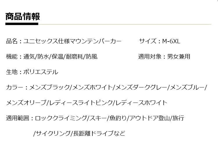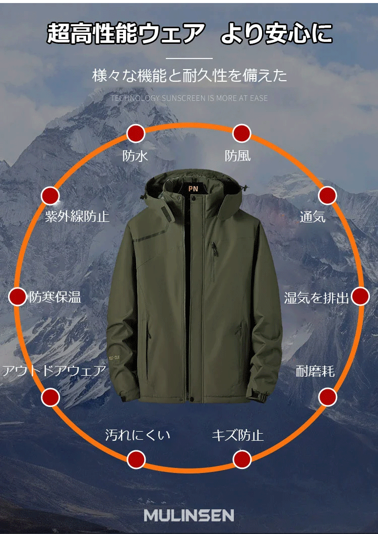 防風防水マウンテンパーカー